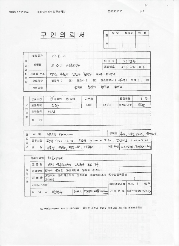 | 제목 | S&U 서울외과 채용공고입니다. | 작성일 | 17-08-16 12:22 |