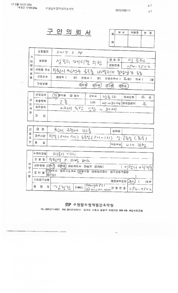| 제목 | 성모수메디컬의원 채용공고입니다. | 작성일 | 17-03-14 13:35 |