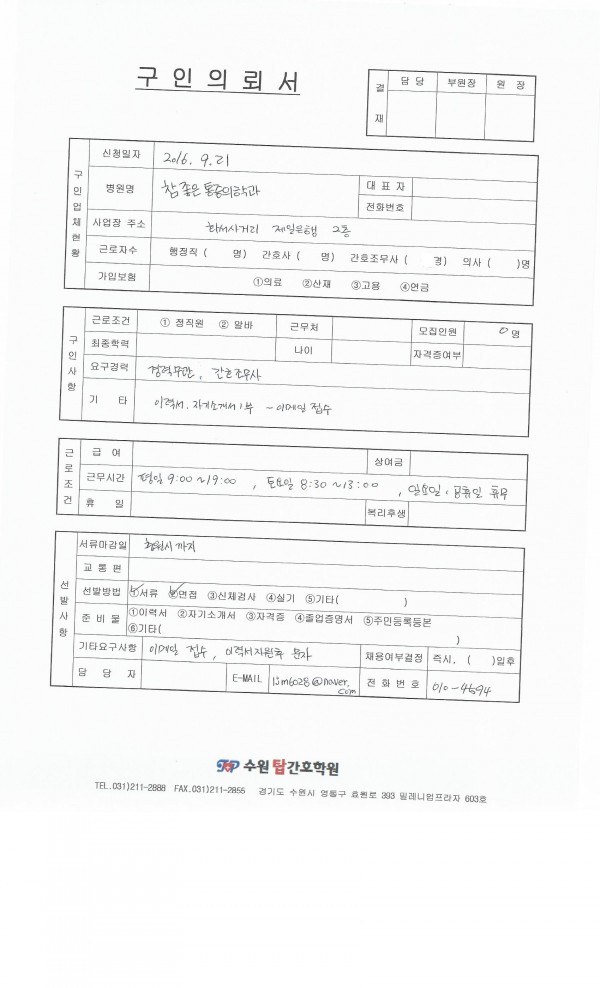 - 이전글정답병원 채용공고입니다. 16.09.26