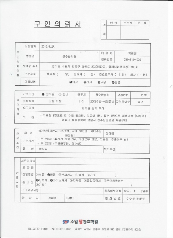| 제목 | 청수한의원 채용공고입니다. | 작성일 | 16-09-27 16:47 |