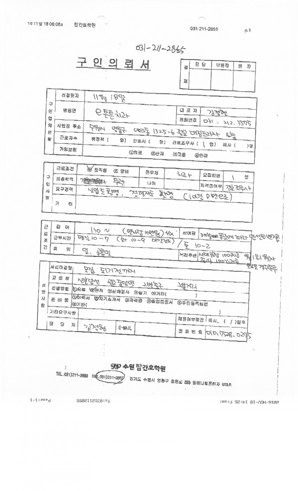 | 제목 | e튼튼치과 채용공고입니다. | 작성일 | 16-11-21 16:16 |
